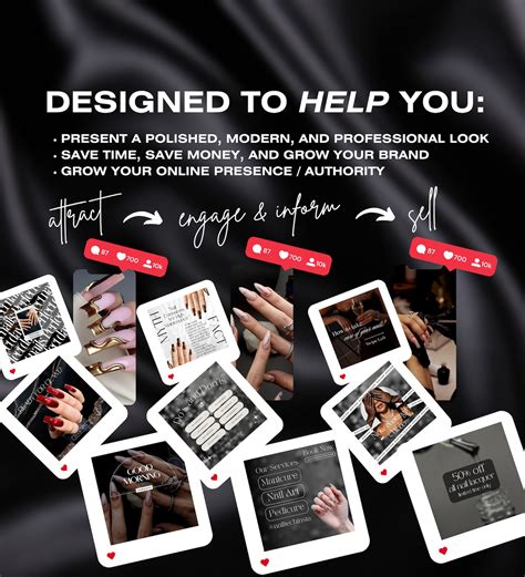 Create before-and-after images to showcase your transformations. Host digital nail artwork tutorials or challenges. Provide unique offers and promotions to your followers.